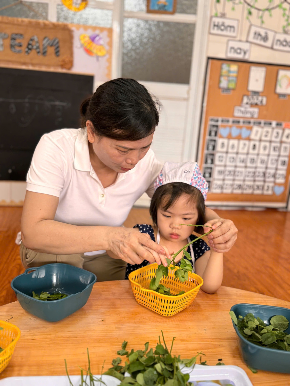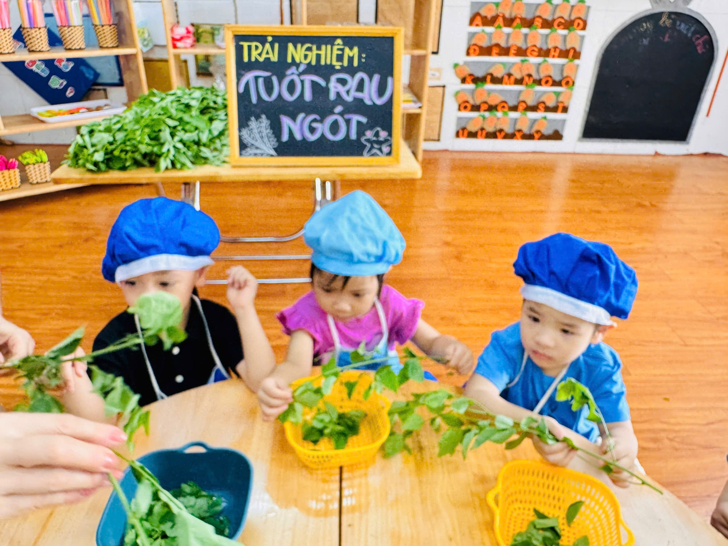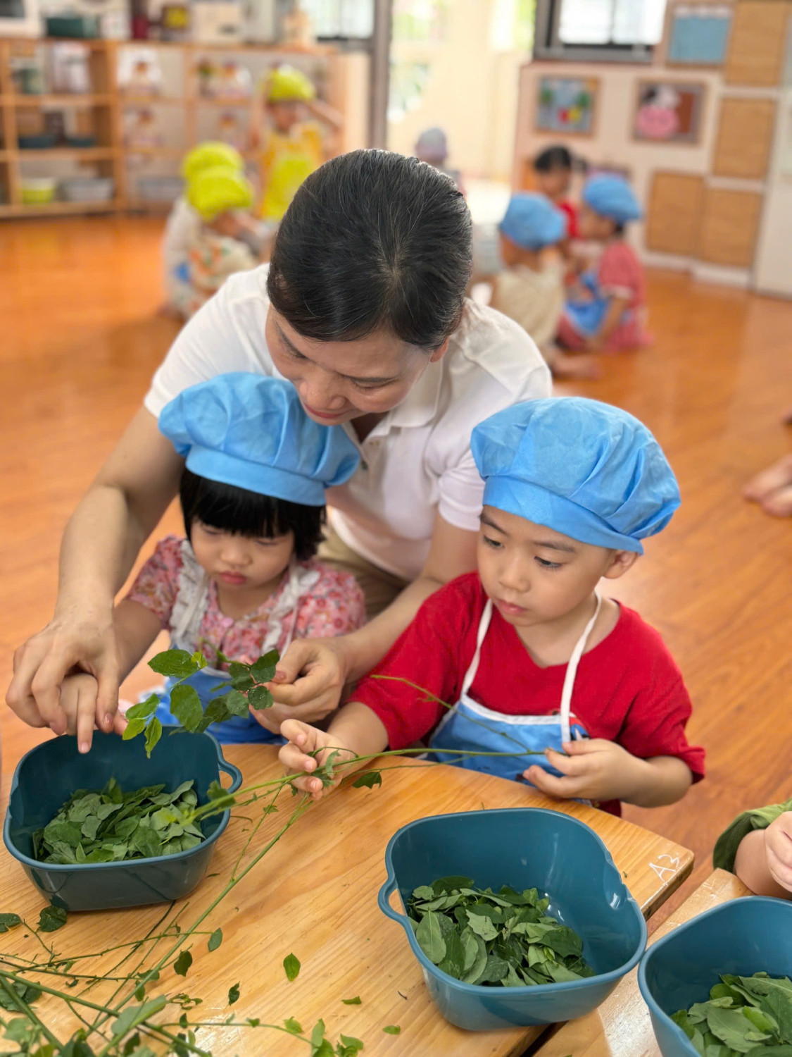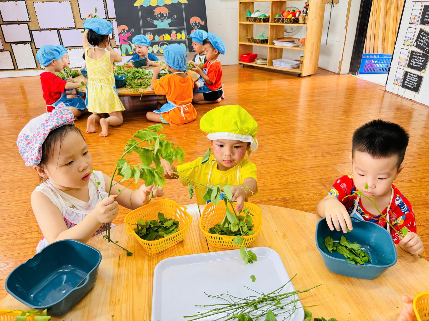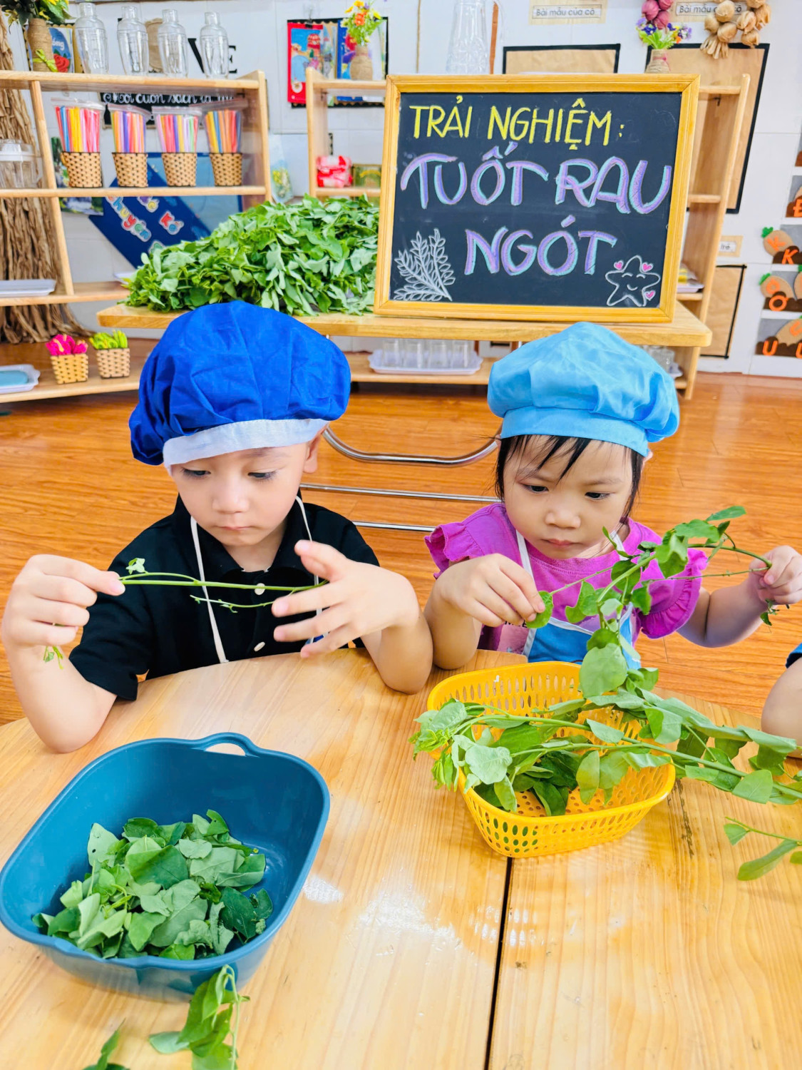 Dưới đây là 1 số hình ảnh giờ thực hành nhặt rau của các con ạ