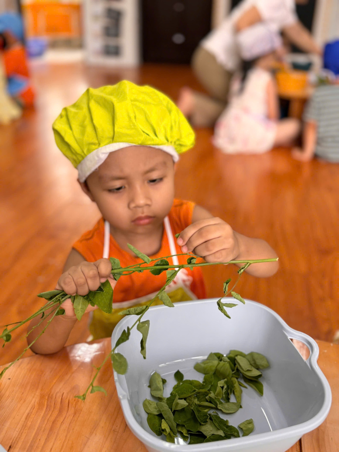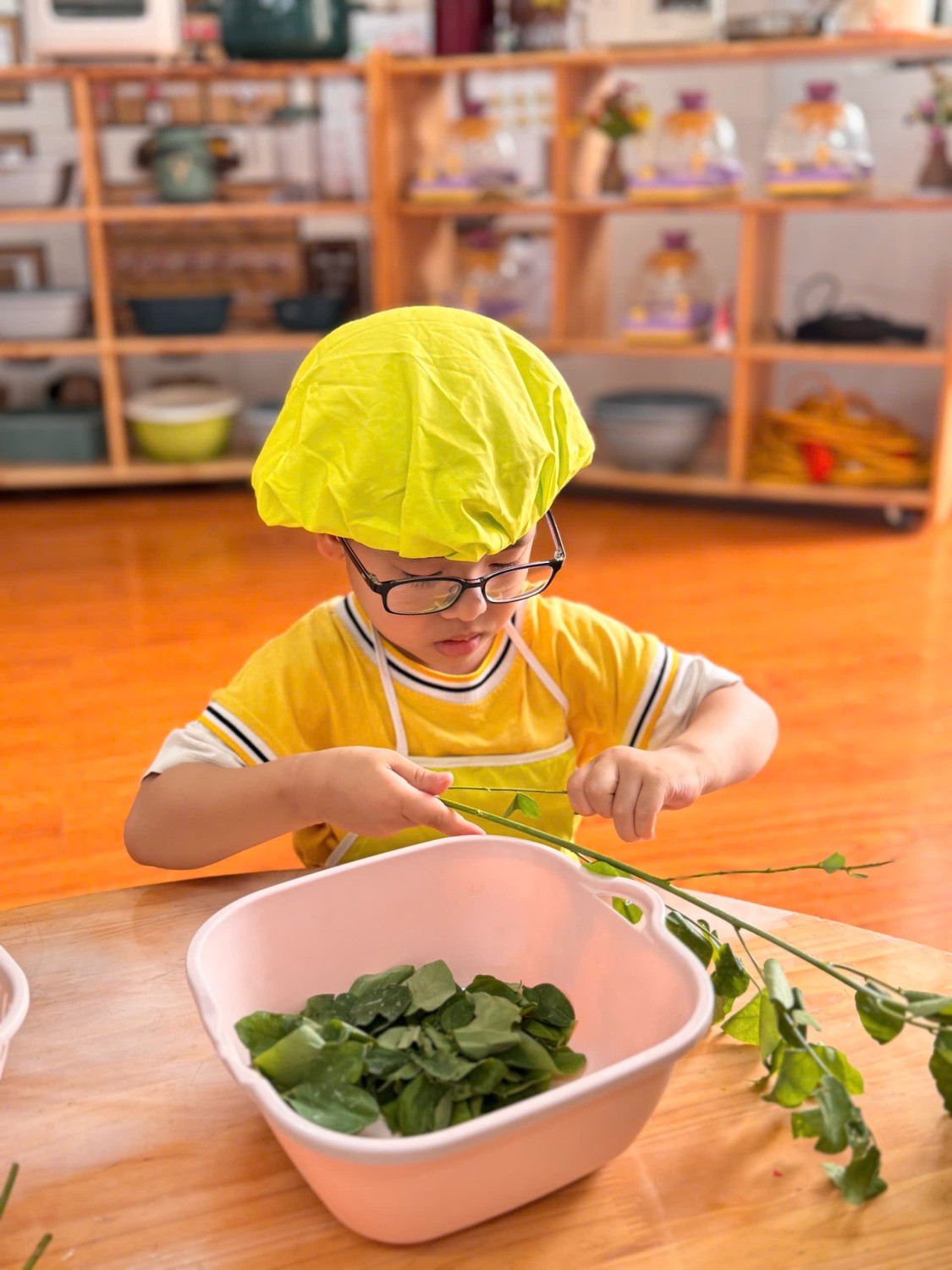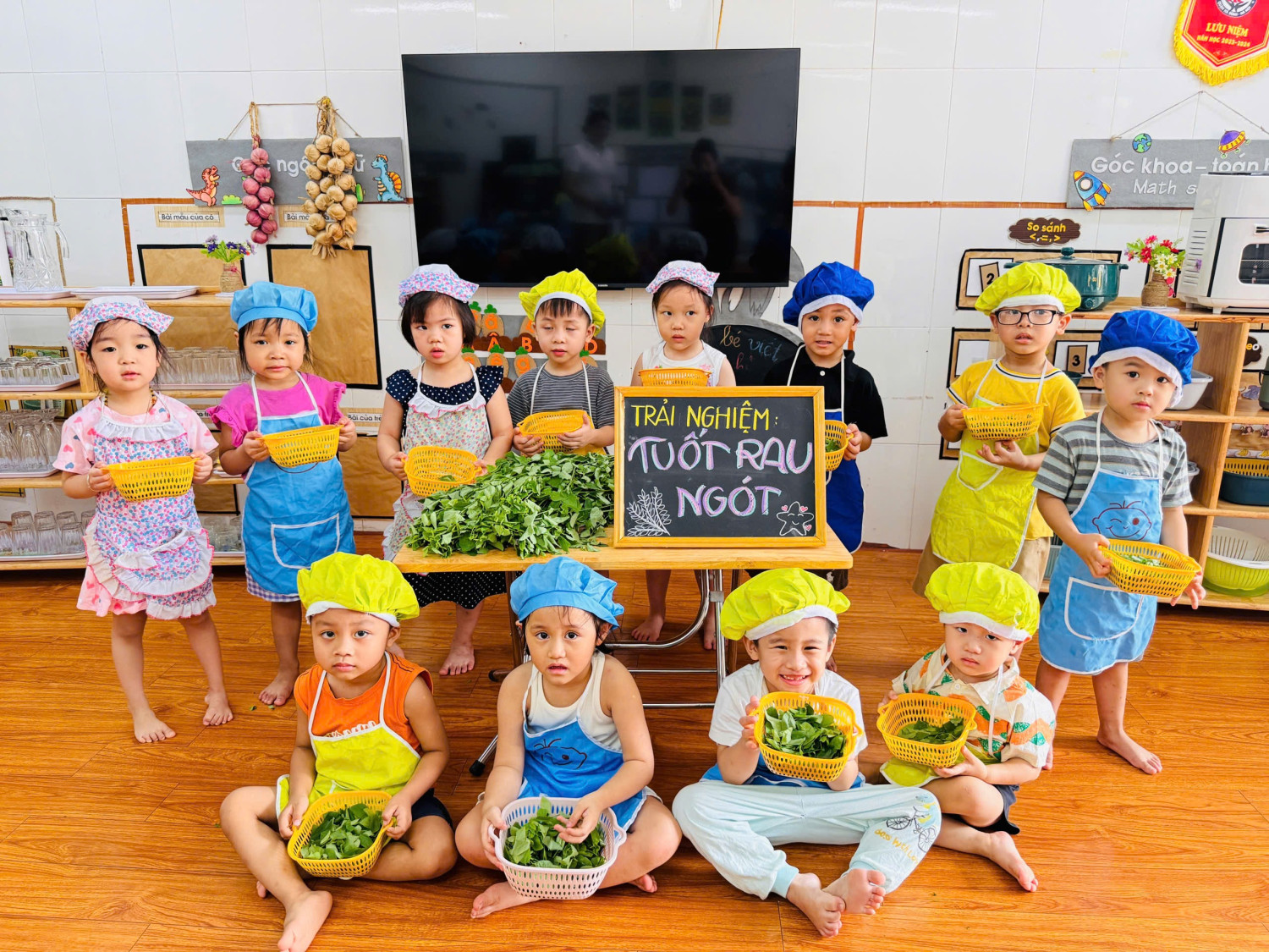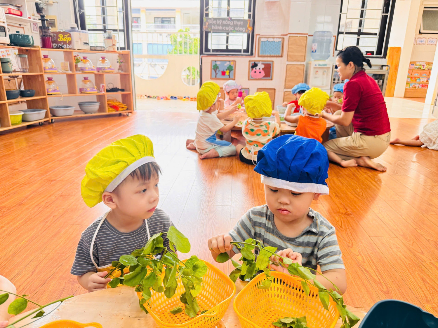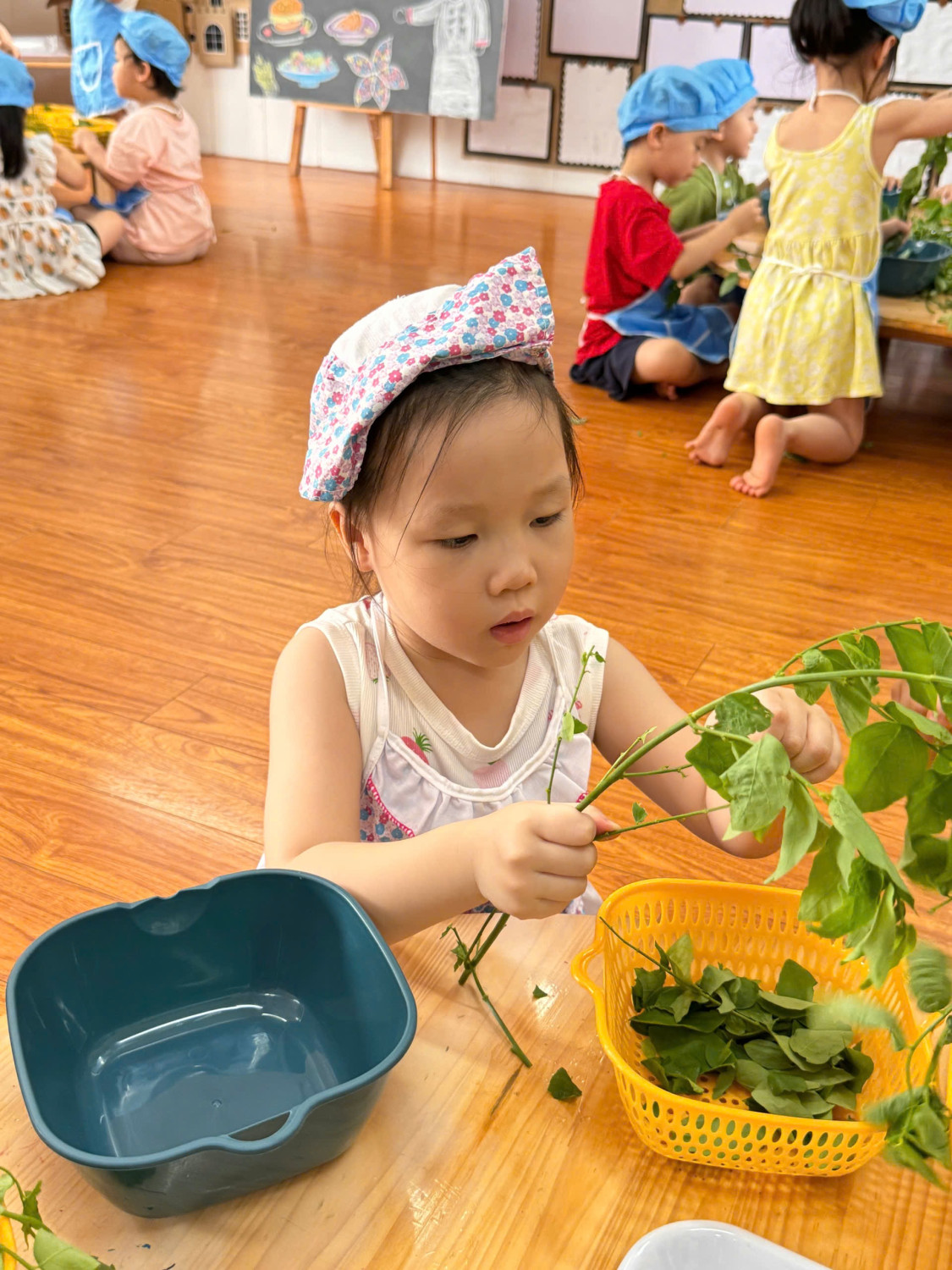 Dưới đây là 1 số hình ảnh giờ thực hành nhặt rau của các con ạ