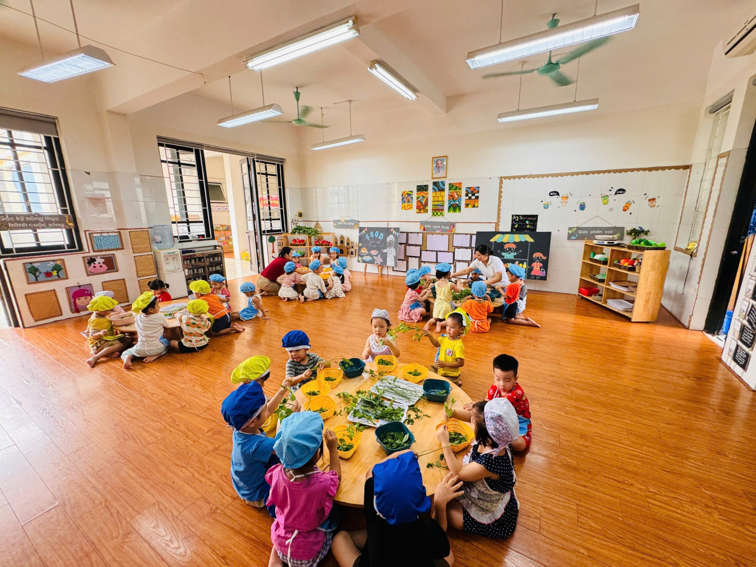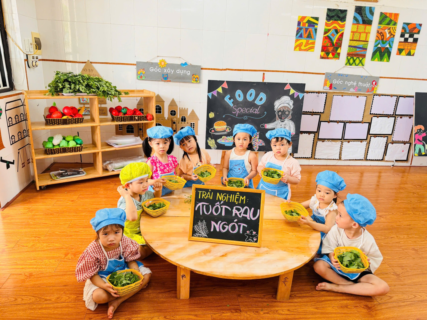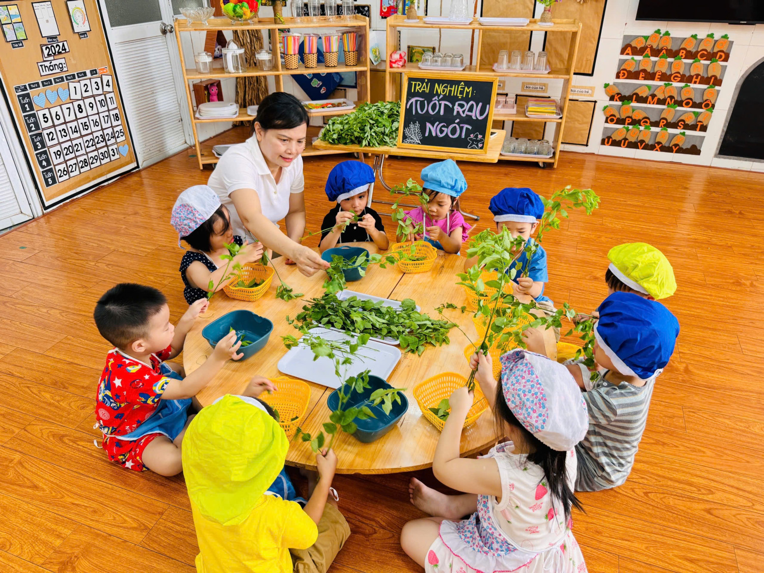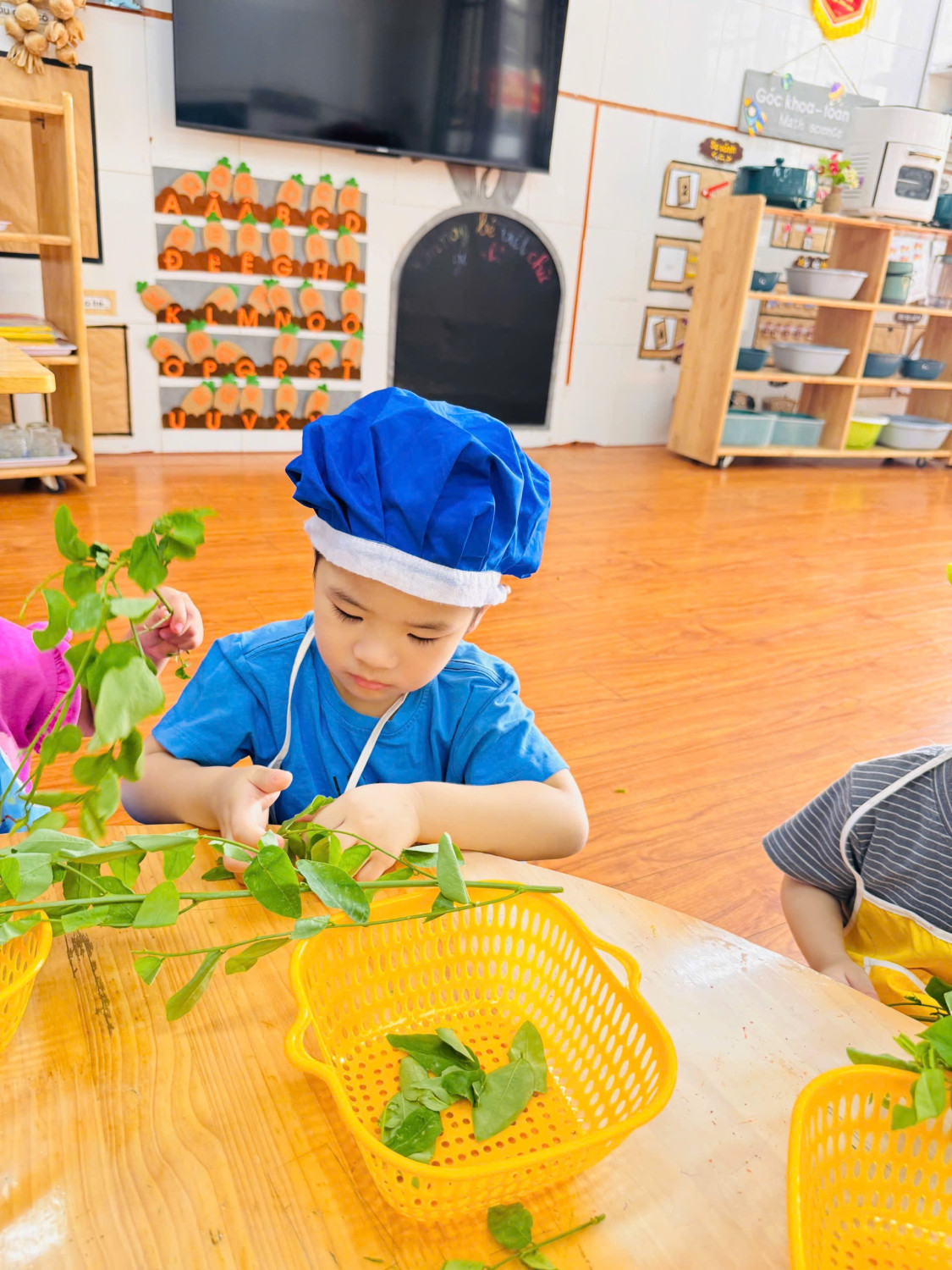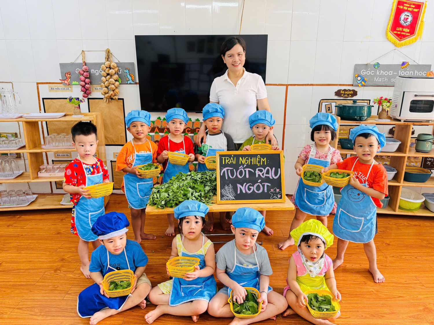 Dưới đây là 1 số hình ảnh giờ thực hành nhặt rau của các con ạ