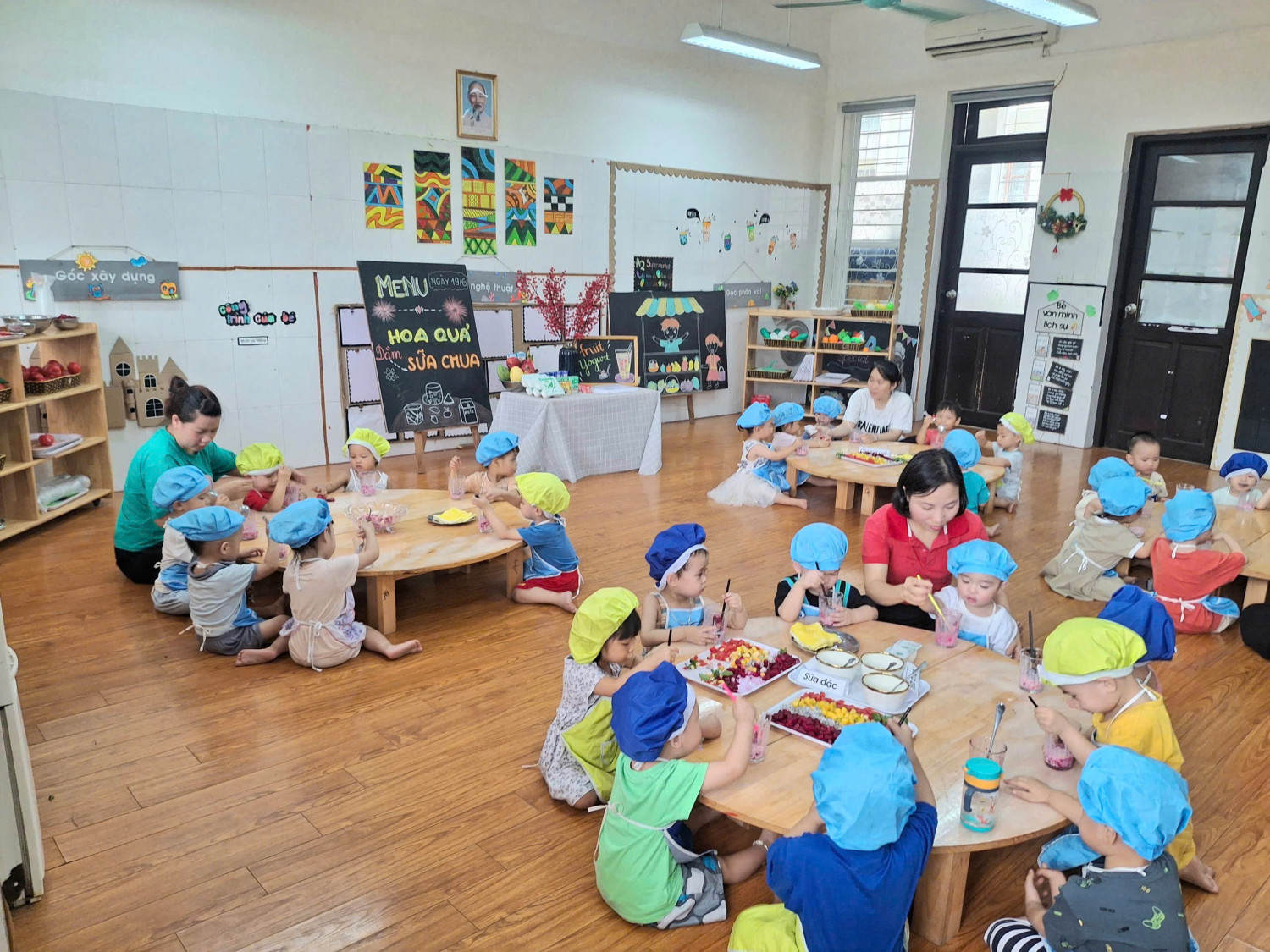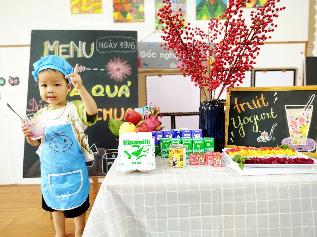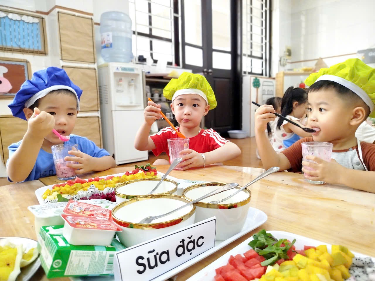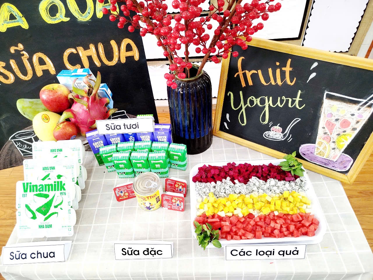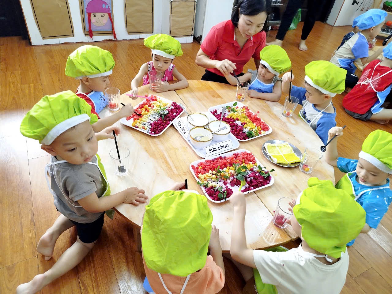 HOẠT ĐỘNG TRẢI NGHIỆM “BÉ LÀM HOA QUẢ DẦM SỮA CHUA”