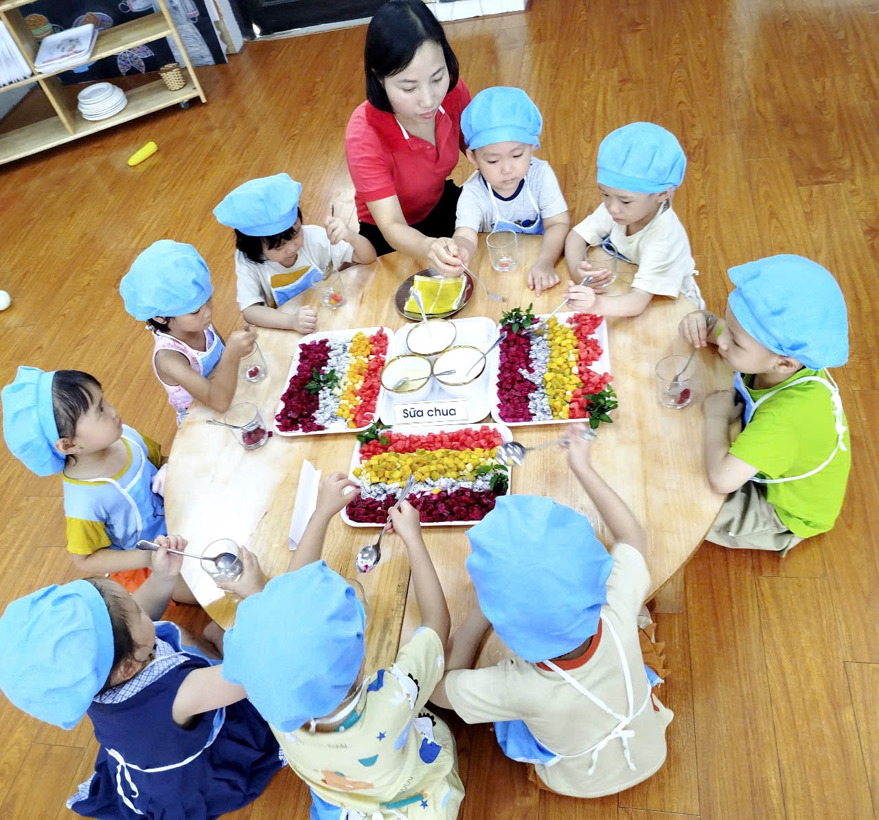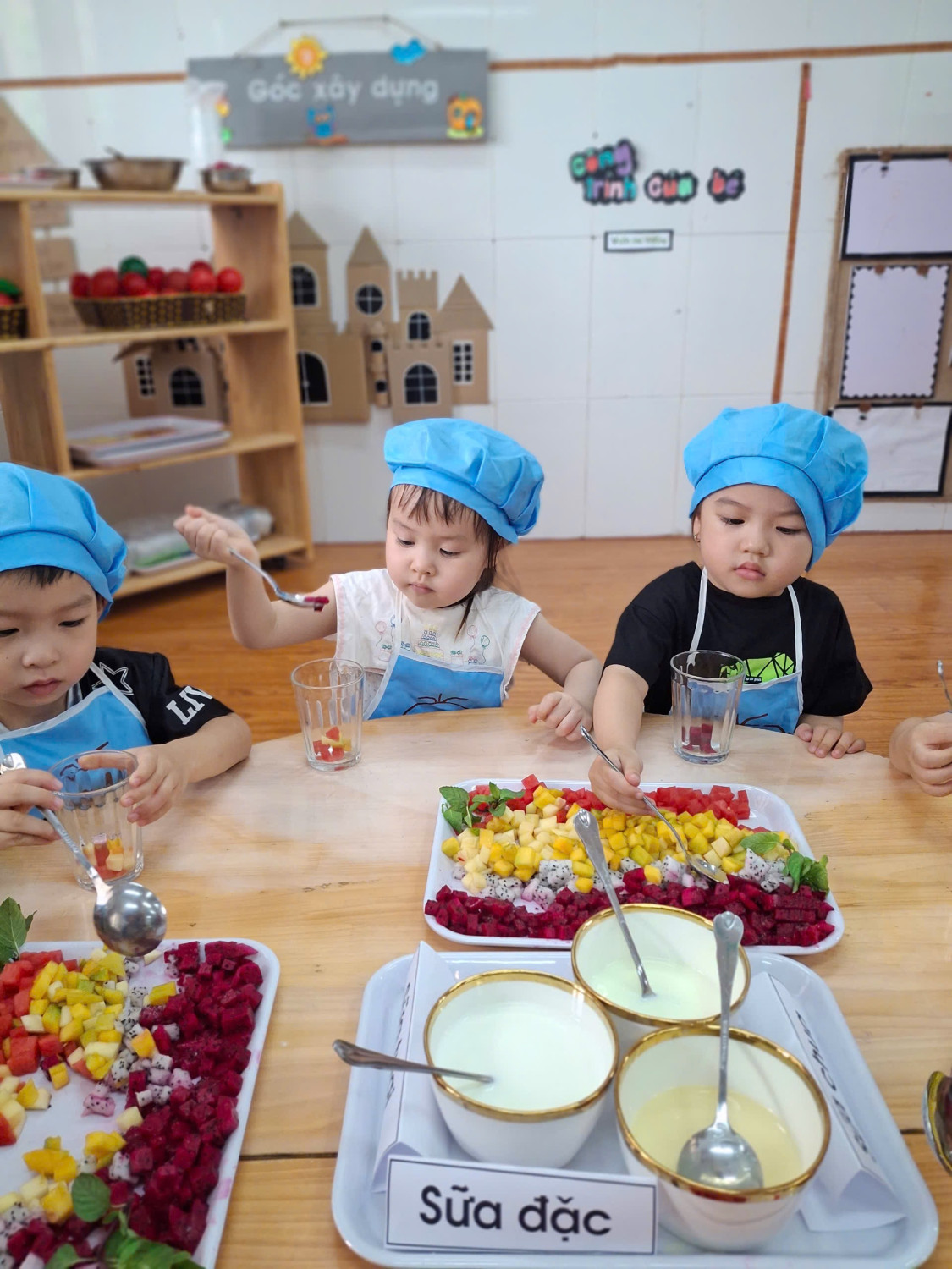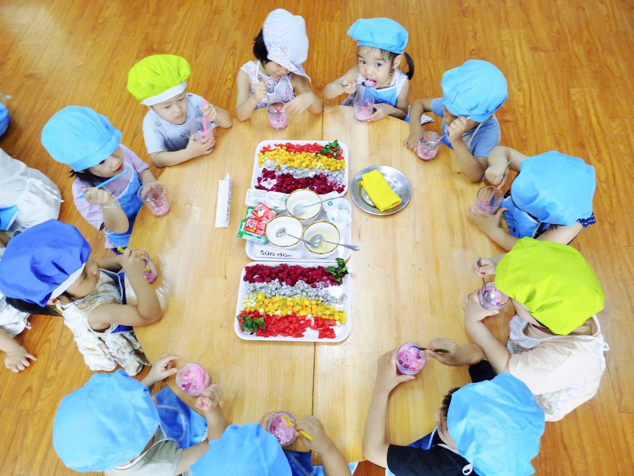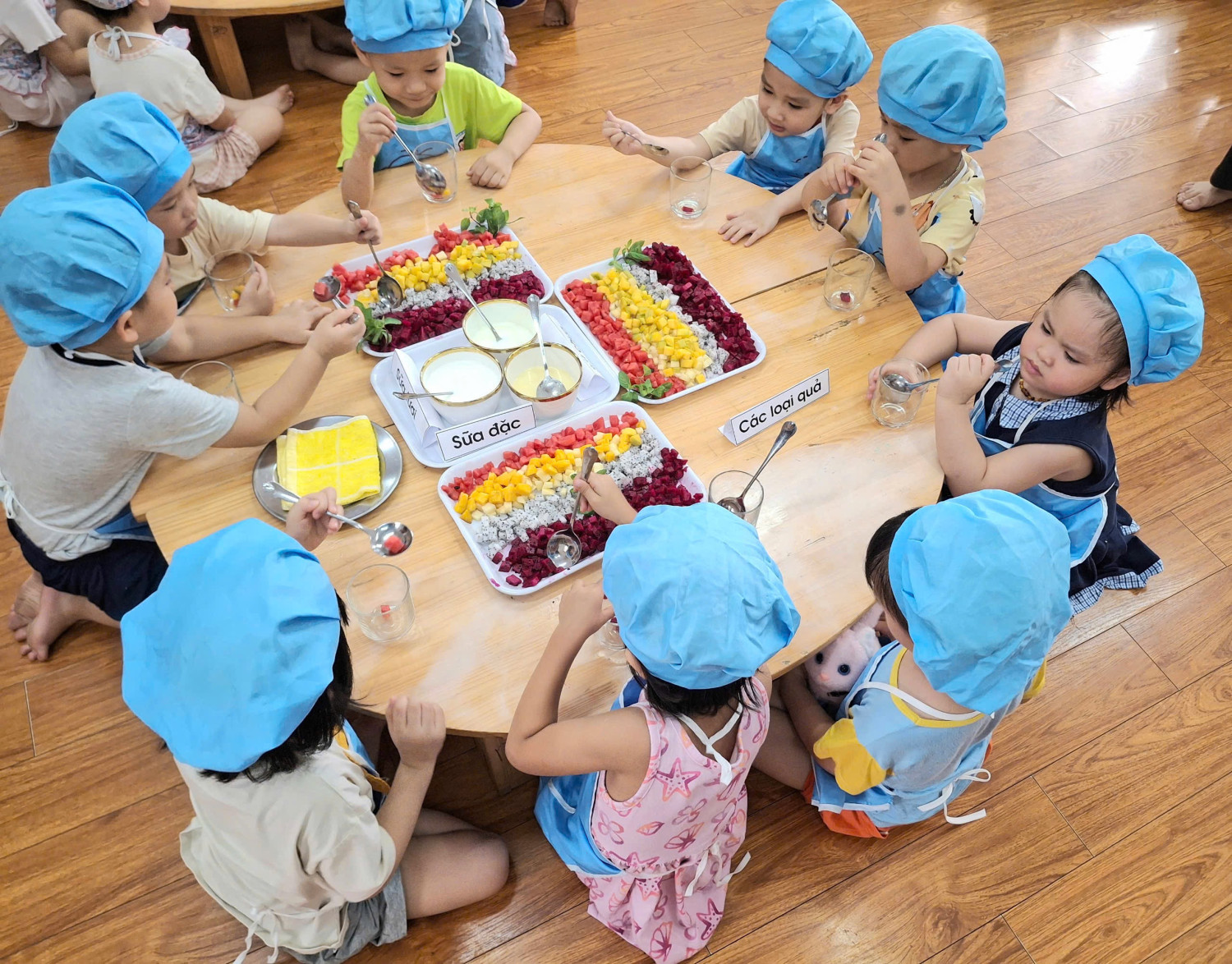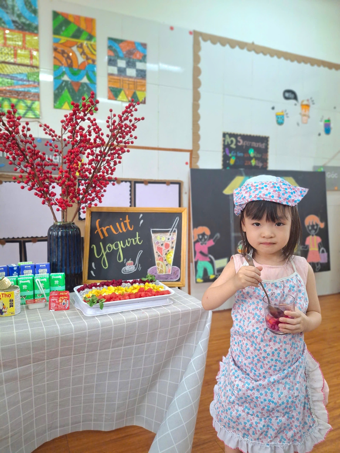 HOẠT ĐỘNG TRẢI NGHIỆM “BÉ LÀM HOA QUẢ DẦM SỮA CHUA”