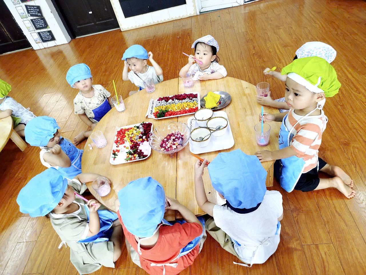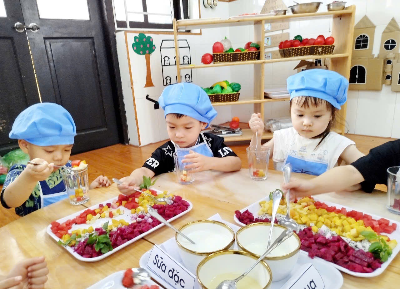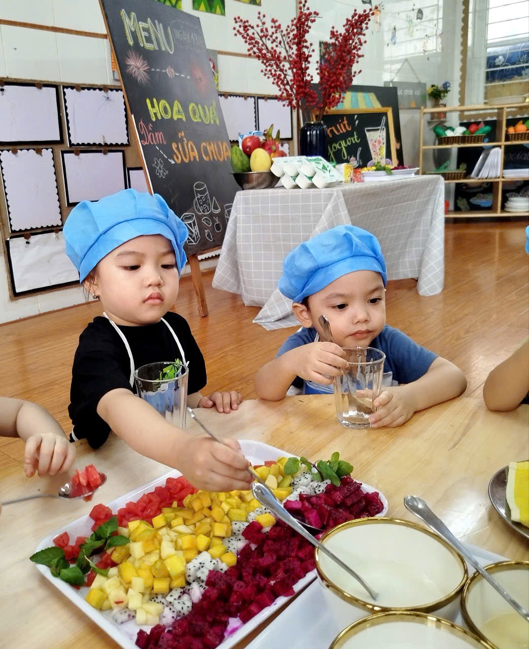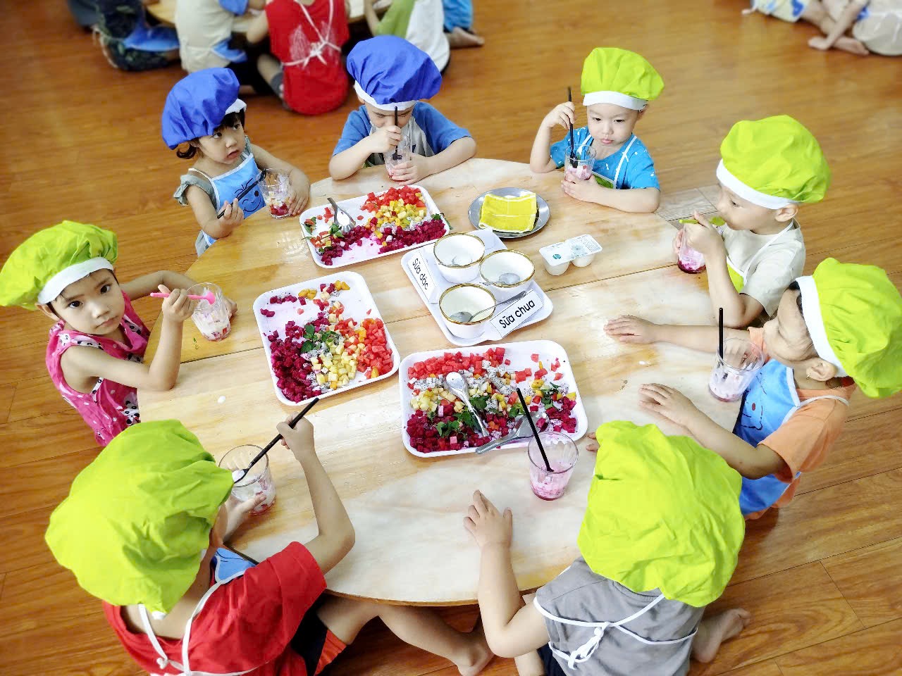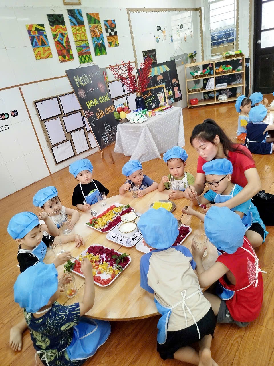 HOẠT ĐỘNG TRẢI NGHIỆM “BÉ LÀM HOA QUẢ DẦM SỮA CHUA”