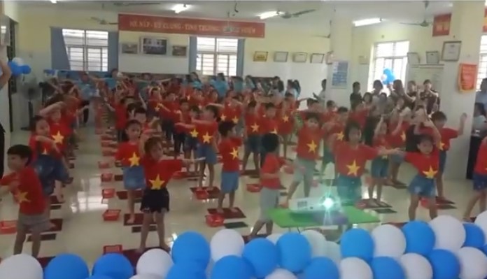 (Hình ảnh trẻ đứng lên vẫy tay và hát vang bài hát: “Đường đến vinh quang”)