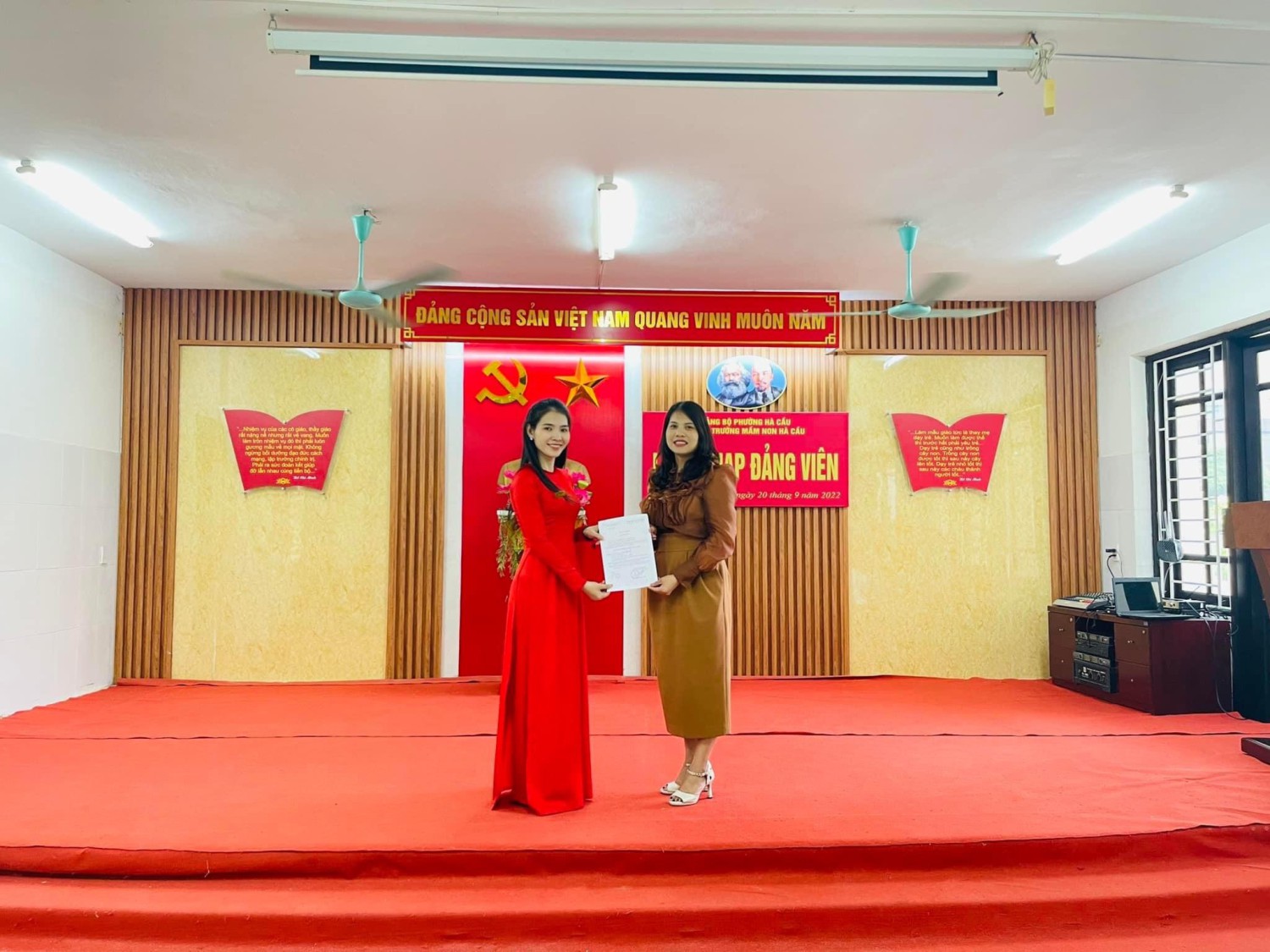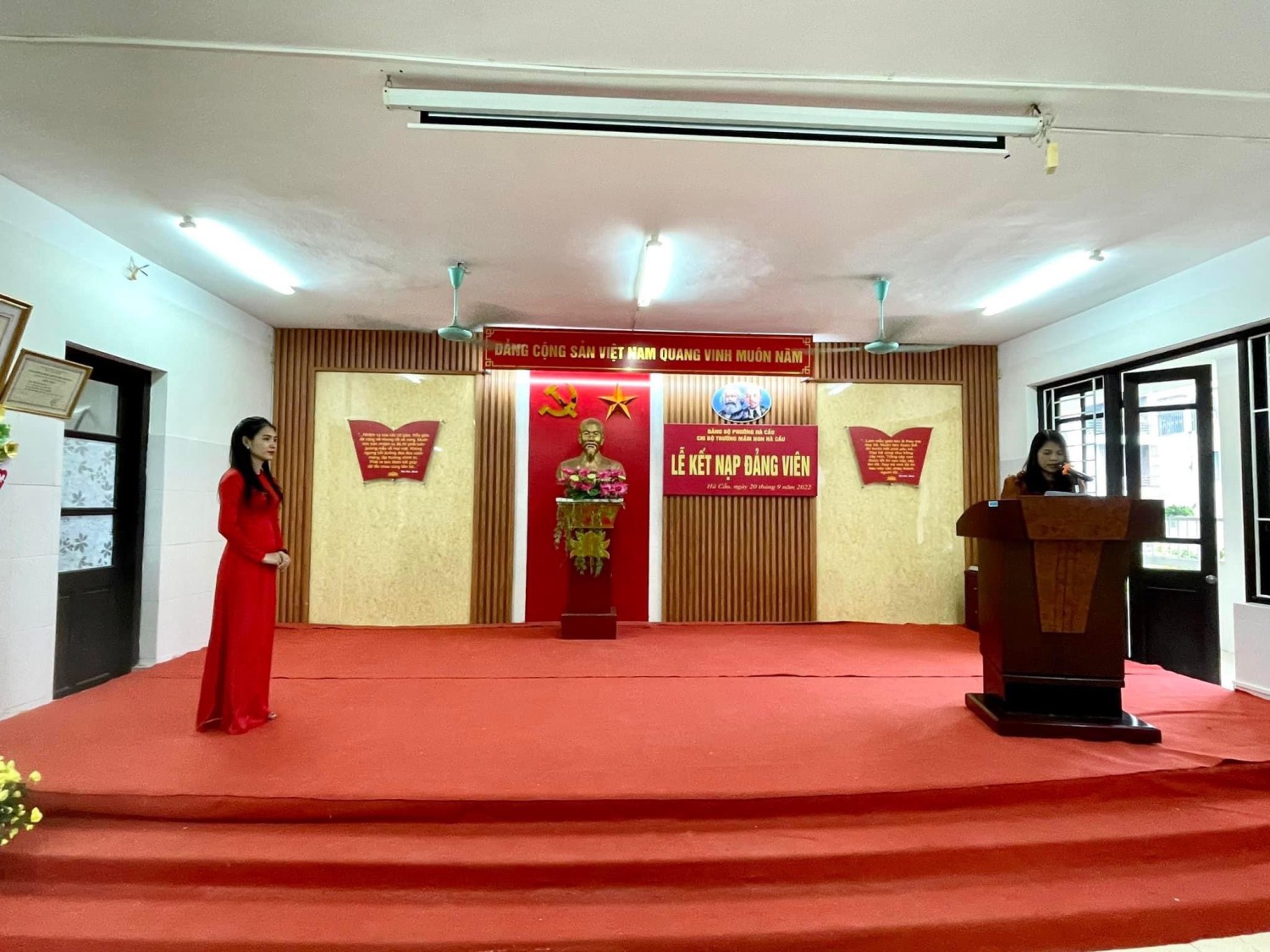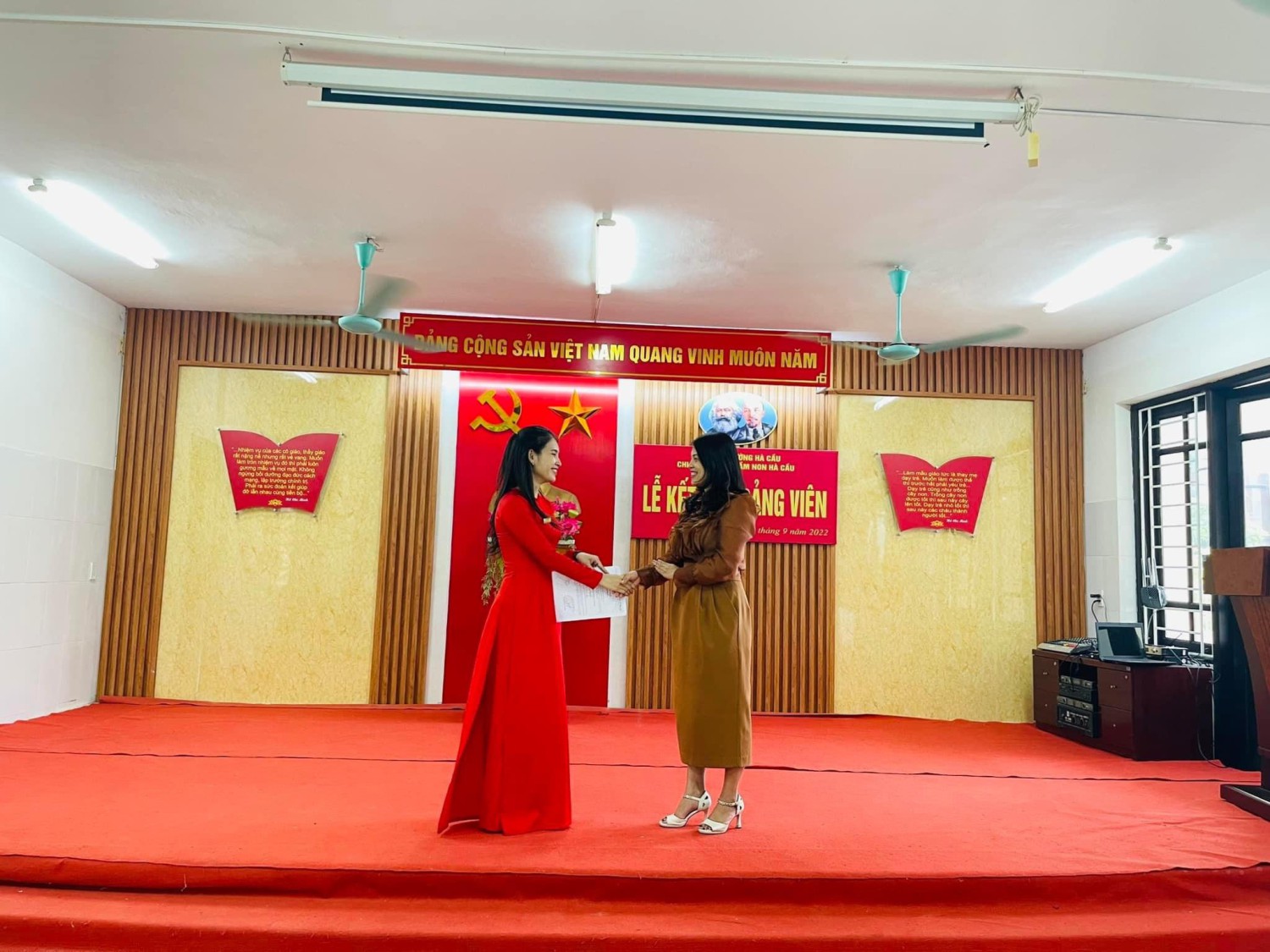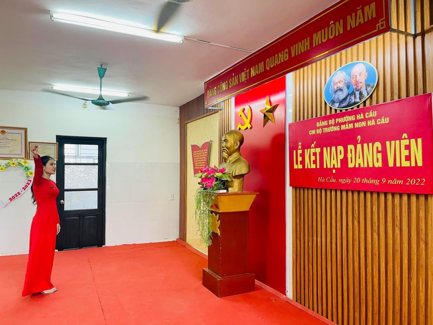 Bồi dưỡng, kết nạp đảng viên mới là nhiệm vụ thường xuyên, có ý nghĩa quan trọng trong công tác xây dựng Đảng, góp phần phát triển, nâng cao chất lượng và sức chiến đấu của tổ chức Đảng và đảng viên. Với ý nghĩa đó, hôm nay ngày 20/9/2022, Chi bộ trường mầm non Hà Cầu long trọng tổ chức Lễ kết nạp Đảng viên mới cho quần chúng ưu tú Nguyễn Thị Dinh.