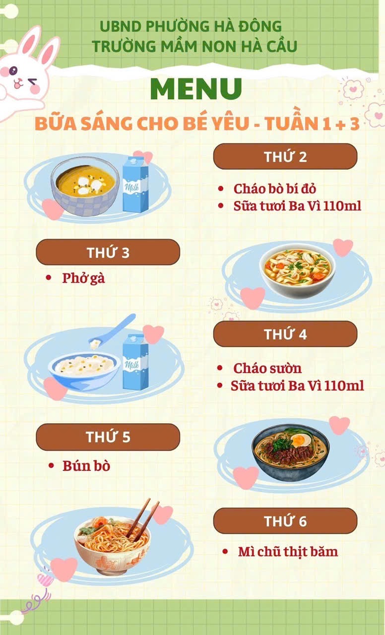 Ông bà, bố mẹ ơi! Từ tháng 8 này, Trường Mầm non Hà Cầu chính thức tổ chức bữa sáng tại trường dành cho các con! 🍲🍜🥣